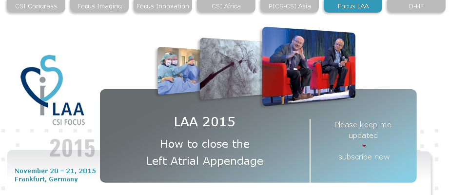 CSI是先天性、结构性及血管心脏介入领域最大的会议,包含大量的实况病例。此次LAA CSI Focus左心耳专题会议,则是针对房颤病人左心耳介入封堵治疗进行了经验分享和深入探讨。作为备受行业瞩目的领先产品,彩神在线网信彩票-彩神通免费版下载-彩神8争霸vlll-彩神购彩购彩大厅-彩神软件陆立根免费版-彩神ll争霸3-彩神ll彩神8-彩神ll争霸彩票-拼搏在线彩神网网页版科技LAmbre™左心耳封堵器在大会受到广泛关注,并被组委会刊登在大会议程首页及大会官方网站首页。