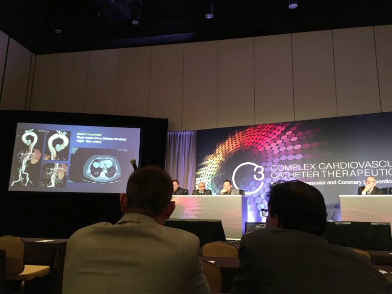 中国医学科学院阜外医院第二届主动脉腔内治疗技术培训班于2016年6月30日至7月2日于北京顺利举办,作为学习班的重要议程之一,于北京时间7月2日晚21时,中国医学科学院阜外医院受邀向美国奥兰多2016年C3会议(Complex Cardiovascular Catheter Therapeutics,复杂心血管介入治疗全球峰会)现场同步直播了一台胸主动脉夹层腔内修复手术。