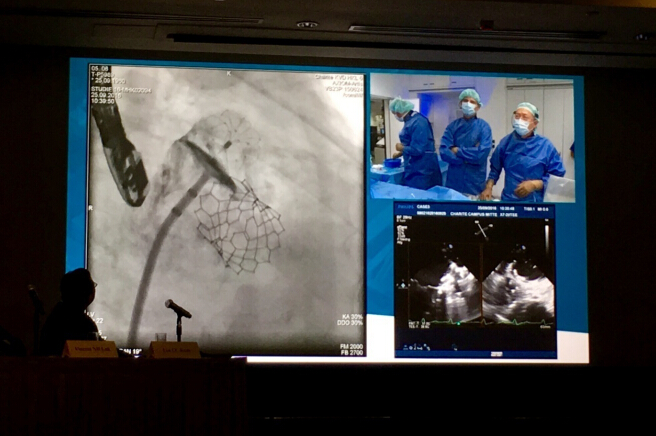 图为:林逸贤医生在讲演中充分肯定LAmbreTM左心耳封堵器系统的特点和优势