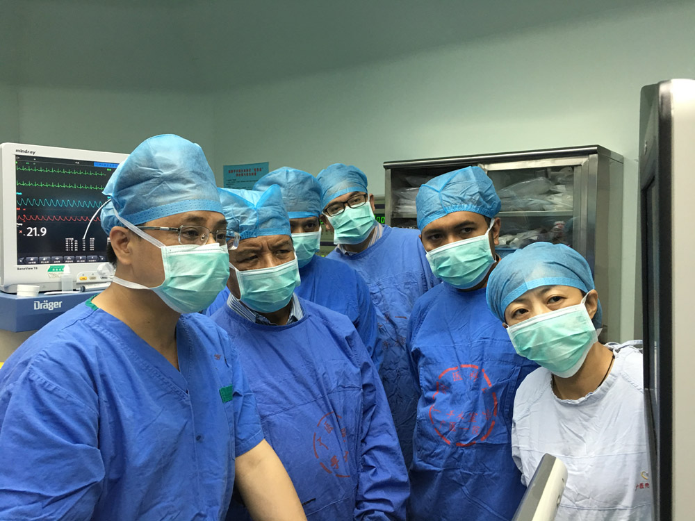 图:潘湘斌主任向印尼和中国专家进行手术演示