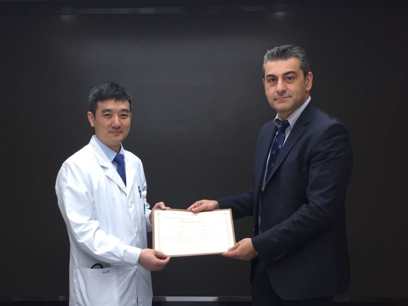 图:阜外医院外科管委会主任兼院长助理郑哲教授和Theodoros Kratimenos教授颁发培训认证书