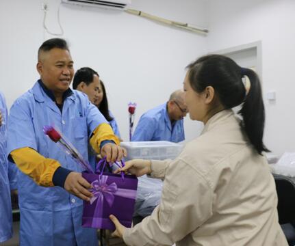 图:董事局主席兼首席执行官谢粤辉先生为女员工送上节日祝福