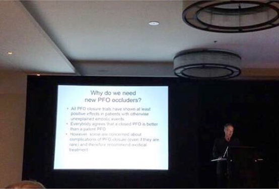 (图:Horst Sievert教授介绍彩神在线网信彩票-彩神通免费版下载-彩神8争霸vlll-彩神购彩购彩大厅-彩神软件陆立根免费版-彩神ll争霸3-彩神ll彩神8-彩神ll争霸彩票-拼搏在线彩神网网页版科技创新的IrisFIT™ PFO封堵器)