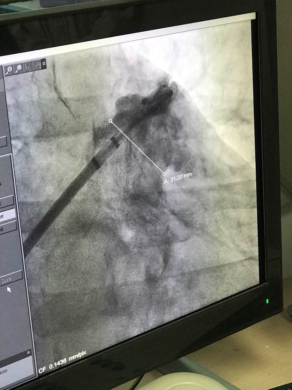 接受手术的患者为一名63岁男性,被诊断为心律失常,其心房纤颤伴有快速心室率,心功能为2级。经食道超声测量患者左心耳开口直径为31.2mm,左心耳深度约为10mm,为鸡翅型心耳结构。因患者左心耳开口大,深度浅,具有丰富临床经验的武汉大学人民医院心血管内科黄鹤主任和来自香港的林逸贤医生选用型号为3640的LAmbre™左心耳封堵器对患者实施封堵,用时不到40分钟便顺利完成整个手术。LAmbre™型号为3640的左心耳封堵器为目前已上市的尺寸最大的左心耳封堵器,为大心耳的患者提供了安全有效的手术解决方案。
