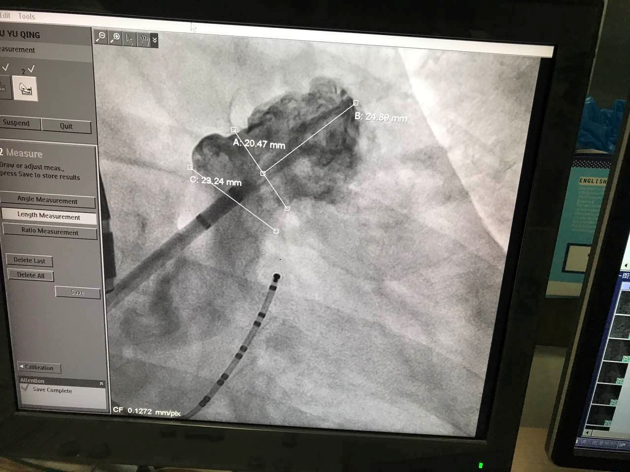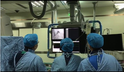 图:黄鹤主任和林逸贤医生在观看LAmbre™植入后造影