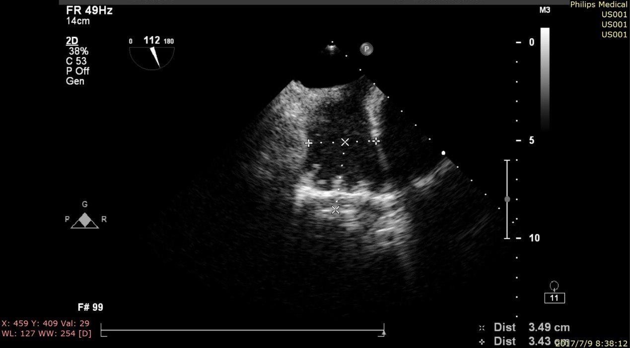 术后TEE各个角度检查,患者左心耳封堵完全,无残余分流,对二尖瓣及左上肺动脉均无影响