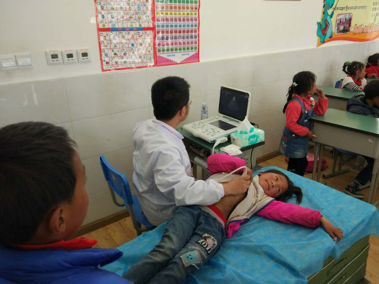 义诊队一行从州府康定城出发,沿着蜿蜒曲折的盘山路,抱着氧气袋一路前行,逐一在各筛查点对当地的先心病患儿进行集中筛查。不辞辛劳、马不停蹄,虽身体因高反有所不适但筛查工作却丝毫未有懈怠,连续的高强度运转,只为不遗漏任何一位患儿。义诊队五天累计行程1200多公里,共在3所小学和2所幼儿园对1900余名儿童进行了先心病义务筛查,共完成超声心动图125例,初筛先心病患儿25例。