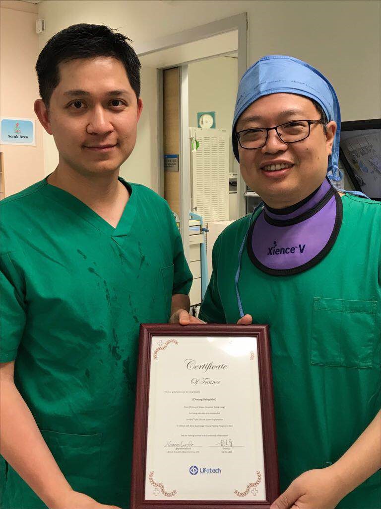 (图:林逸贤教授为香港威尔斯亲王医院张诚谦医生颁发LAmbre™学院毕业证书)