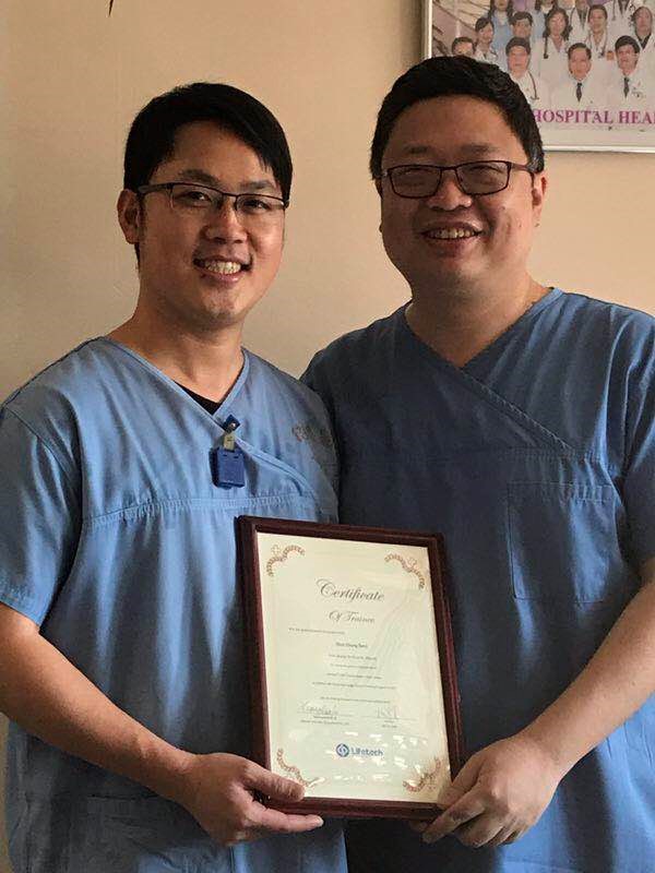 (图:林逸贤教授为澳门镜湖医院谭冠昶医生颁发LAmbre™学院毕业证书)