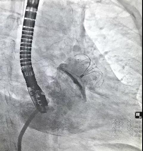 6月3日上午8点,由复旦大学附属中山医院向大会现场直播了一台选用LAmbre™左心耳封堵器系统进行的封堵手术。本例手术由复旦大学附属中山医院的周达新教授和来自香港的林逸贤教授共同完成。接受手术的患者为一名77岁男性,患者3个月前脑梗,并拒绝长期抗凝药物治疗,被诊断为心房颤动,入院评估CHA2DS2-VASc评分为5分。术中造影测量显示其左心耳开口直径为39.9mm,左心耳形态为风向标型。周达新教授和林逸贤教授决定选用型号为LT-LAA-3640的LAmbre™左心耳封堵器对患者实施封堵。手术进行的非常顺利,术后造影显示,患者左心耳封堵完全,无残余分流。
