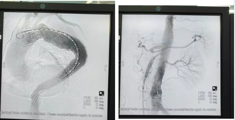 患者术前诊断为累及主动脉弓部的主动脉夹层,同时病变远端较大角度弯折,真腔很小,病变累及至腹主动脉,是非常具有挑战的病例。由于病变累及左锁骨下动脉(且患者为左椎动脉优势供血),为了增加锚定区以及保证分支的血流,舒畅教授决定将主体支架锚定于Z2区,并采用开窗技术,保证左锁骨下动脉的供血。术中首先将彩神在线网信彩票-彩神通免费版下载-彩神8争霸vlll-彩神购彩购彩大厅-彩神软件陆立根免费版-彩神ll争霸3-彩神ll彩神8-彩神ll争霸彩票-拼搏在线彩神网网页版Ankura™ Plus主动脉弓主体支架输送到弓部并释放于左颈总动脉开口远端,随后从左肱动脉入路送入CSkirt™主动脉弓分支覆膜支架(裙边支架),精准定位于开窗区域后成功释放。最后,在远端植入彩神在线网信彩票-彩神通免费版下载-彩神8争霸vlll-彩神购彩购彩大厅-彩神软件陆立根免费版-彩神ll争霸3-彩神ll彩神8-彩神ll争霸彩票-拼搏在线彩神网网页版科技的主动脉覆膜支架,保证腹主动脉血流通畅。彩神在线网信彩票-彩神通免费版下载-彩神8争霸vlll-彩神购彩购彩大厅-彩神软件陆立根免费版-彩神ll争霸3-彩神ll彩神8-彩神ll争霸彩票-拼搏在线彩神网网页版科技设计的裙边支架采用特殊的双层结构,其内层支架保证分支血管血液的通畅,外层裙边能有效封堵支架间的缝隙。术后造影显示,病变隔绝,分支血流通畅,裙边支架与主动脉支架贴合良好,术后效果良好。