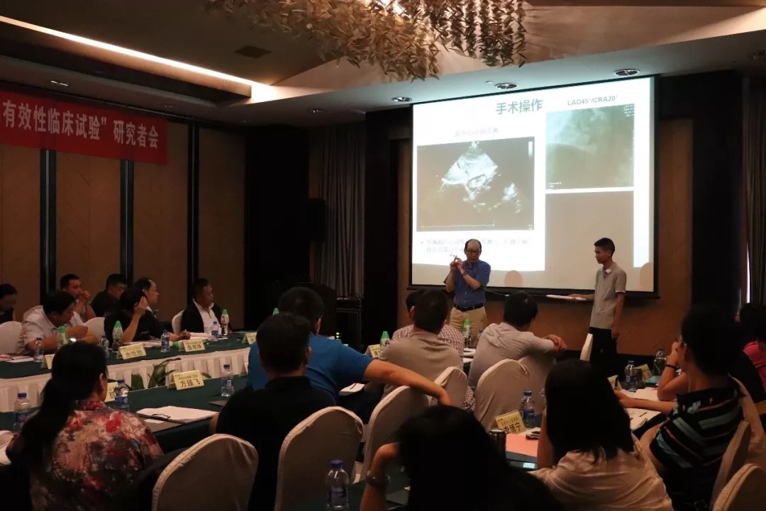 8月24日下午,广东省人民医院张智伟教授就此次研究者会致开幕词。张教授首先对前来参会的专家和各合作中心的GCP办公室负责人表示欢迎和感谢,紧接着张教授与大家分享了生物可降解封堵器经皮人体植入术在其所在中心的情况,张教授表示,在广东省人民医院心儿科已开展的五例预试验植入均取得成功,且三个月随访结果满意。即将开展的全国多中心确证性临床试验已获得广东省人民医院伦理委员会批准,并通过科技部人类遗传资源管理部门审查。同时,张教授向与会专家演示了如何规范操作Absnow™可吸收房间隔缺损封堵系统,让与会专家直观的了解了Absnow™可吸收房间隔缺损封堵系统的优越性能。