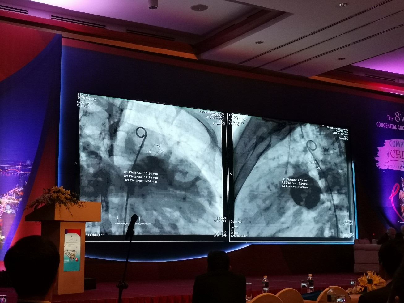 1月9日下午,来自泰国的Dr.Supaporn Roymanee教授使用彩神在线网信彩票-彩神通免费版下载-彩神8争霸vlll-彩神购彩购彩大厅-彩神软件陆立根免费版-彩神ll争霸3-彩神ll彩神8-彩神ll争霸彩票-拼搏在线彩神网网页版科技HeartR™封堵器向大会现场进行了手术直播。患者是一名26岁女性,被诊断为动脉导管未闭(PDA大小为10mm,长度9mm)伴有严重的肺动脉高压。手术使用HeartR™室间隔缺损封堵器进行封堵,手术非常顺利,封堵完全。HeartR™封堵器设计合理,释放后能自动校正封堵器位置,并使封堵器稳固,不易移位,具有操作简单、效果可靠、成功率高、近期疗效可靠的优点,且长期使用的疗效确切。