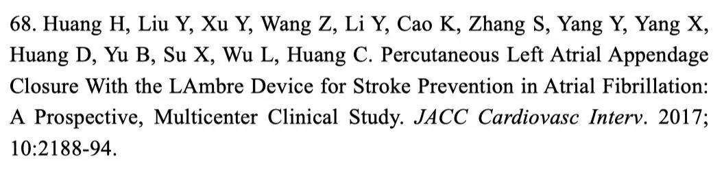LAmbre™左心耳封堵器临床研究数据被国际权威专家共识引用,不仅是对LAmbre™的认可、对武汉大学人民医院心内科研究工作的认可,更是对我国左心耳封堵研究发展迅猛、成果显著的关注和认可。