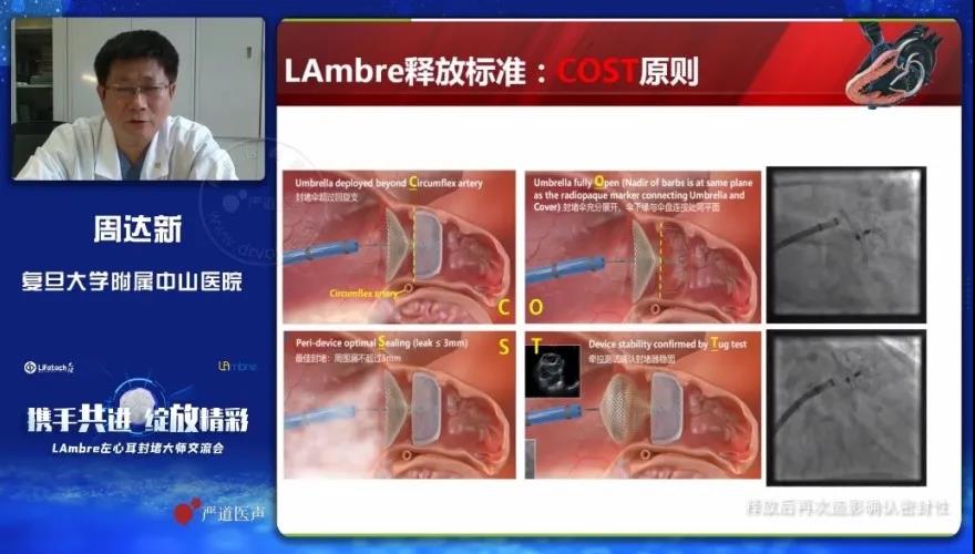 紧接着,温州医科大学附属第一医院的黄伟剑教授分享了LAmbre™左心耳封堵器系统于其所在中心的植入数据与临床使用经验,并为大家详细解读了左心耳封堵的标准操作流程。黄教授强调,LAmbre™在保证手术安全性的同时,有着丰富的型号选择,能够应对各种不同的左心耳解剖结构,封堵器的适用范围更广,且释放精准度和植入成功率更高,为患者及医生提供了更优的治疗选择。