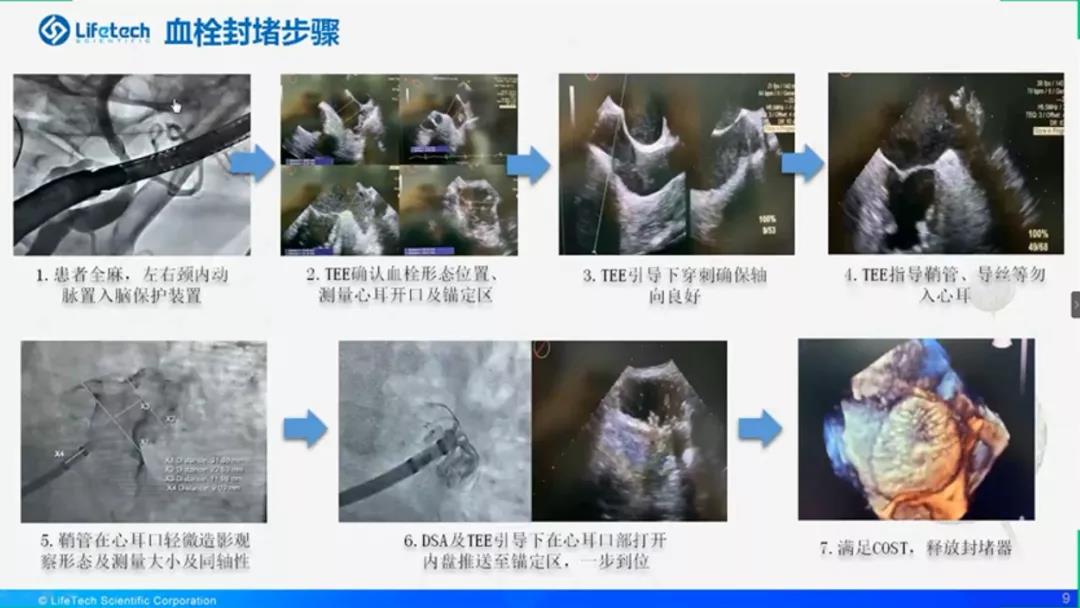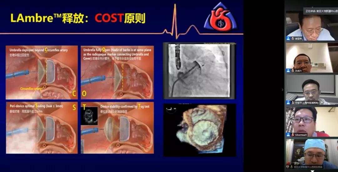 中国解放军西部战区总医院王珍教授分享了一例使用LAmbre™为藏区患者进行的左心耳封堵手术。术者在TEE引导下进行房间隔穿刺、轴向调整,最终高质量地完成C(Circumflex artery)O(Open fully)S(Sealing)T(Tug test),获得了满意的封堵效果。王珍教授在总结中表示,LAmbre™(即盘式封堵器)在穿刺点位置以及左心耳形态结构的选择上更加宽松,对于初学者而言操作简单,学习曲线短,是一款得心应手的左心耳封堵装置。