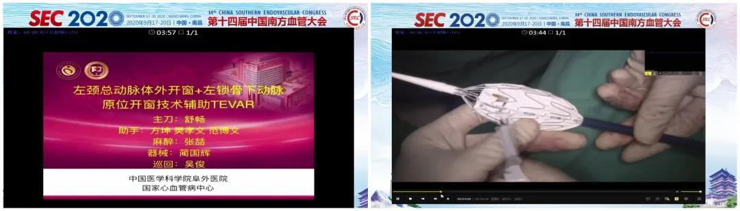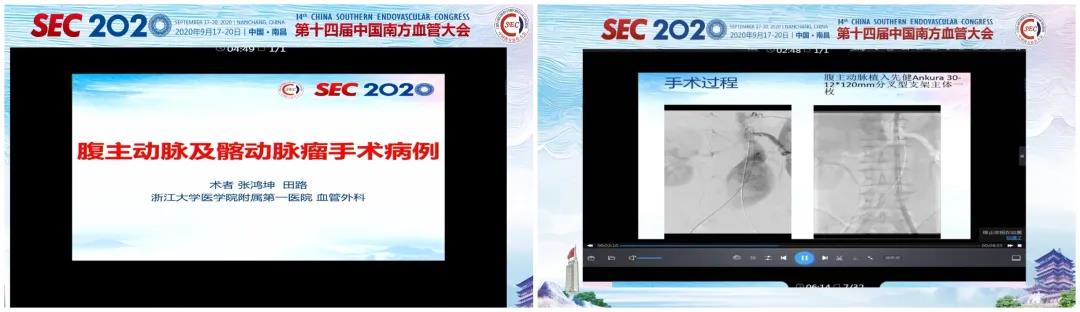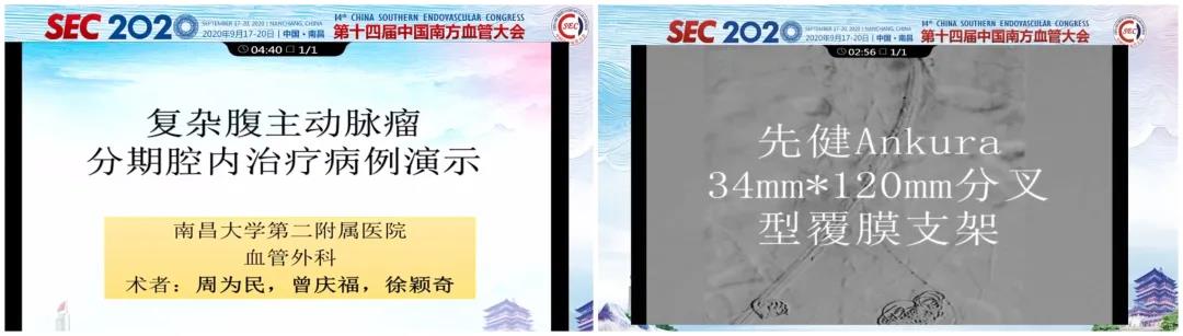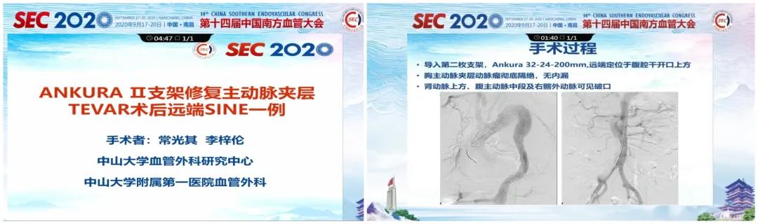 浙江大学附属第一医院张鸿坤教授团队医生分别演示了采用Ankura™支架重建胸腹主动脉瘤分支和髂内动脉的病例,均取得了十分满意的效果。