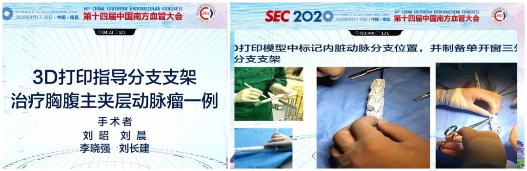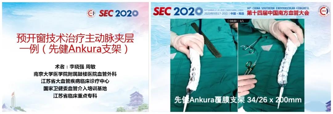 南京大学医学院附属鼓楼医院李晓强教授团队的刘昭教授演示了采用Ankura™支架,结合3D打印指导分支支架治疗胸腹主动脉瘤的病例,周敏教授演示了Ankura™支架结合预开窗技术治疗主动脉夹层的病例,两例手术均取得了令人满意的效果。