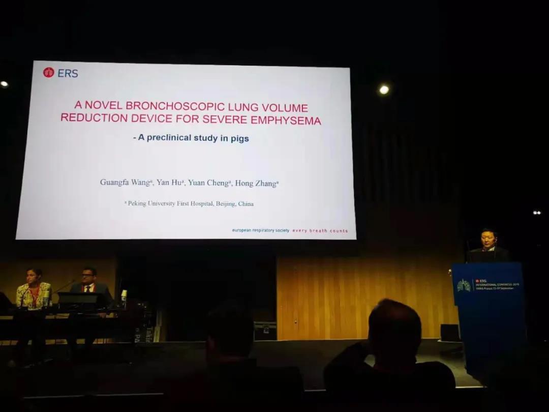 (图2:中国著名呼吸病学专家王广发教授在欧洲呼吸学会国际会议现场总结Cinenses™临床前实验结果)