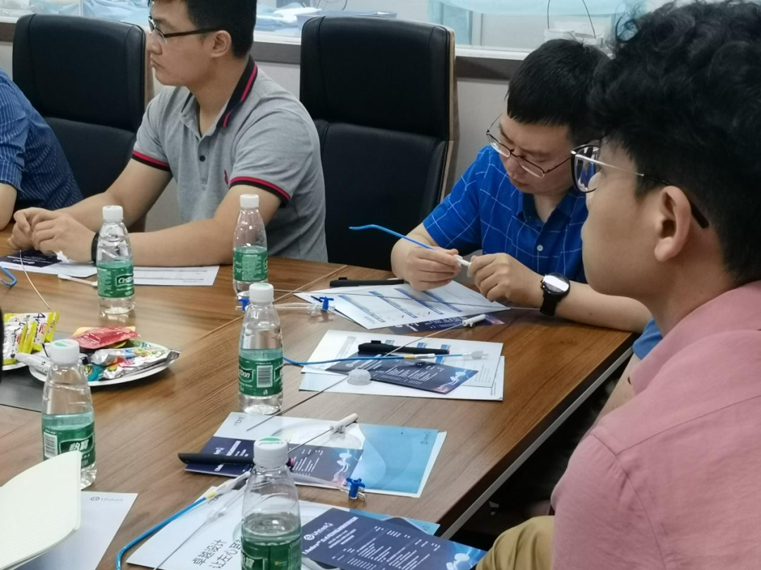 紧接着,黄鹤教授与刘育教授采用LAmbre™左心耳封堵器系统进行了手术封堵模拟,并让参与学习的专家逐一操作,练习了房间隔穿刺,心耳造影、测量,封堵器型号的选择与释放等手术步骤和技巧。专家们一致认为LAmbre™左心耳封堵器系统在左心耳封堵术中具备更好的安全性和更优的操作便捷性,并可有效缩短手术时长,减少了医患在射线下暴露的时间,为临床实践带来更佳的体验。