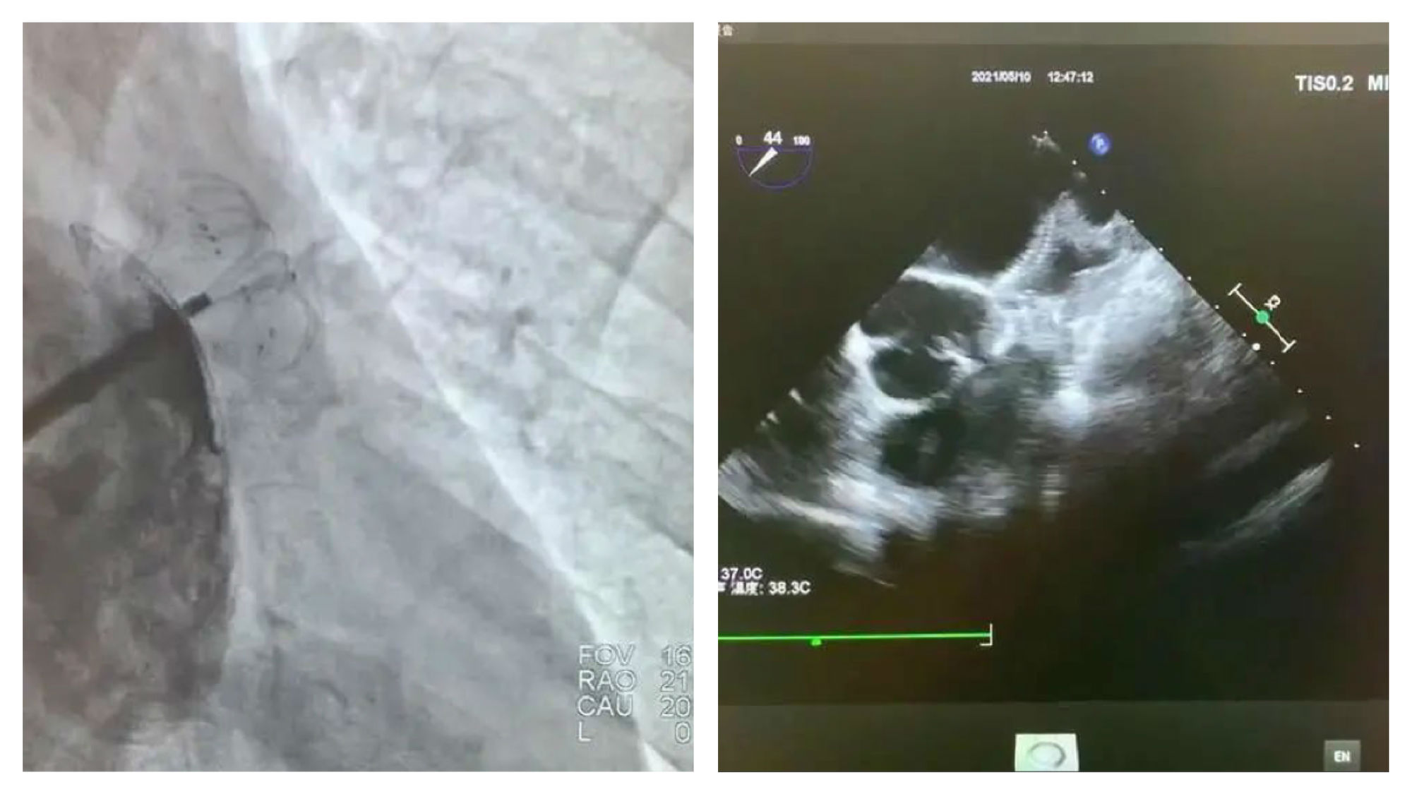 DSA与超声显示封堵良好,无残余分流
