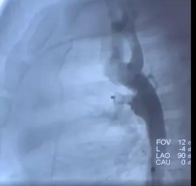 (图3:术后造影显示,封堵器封堵完全,无残余分流和器械移位)
