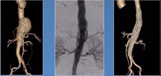 (图:使用G-Branch™胸腹主动脉覆膜支架系统腔内重建4个内脏分支动脉)