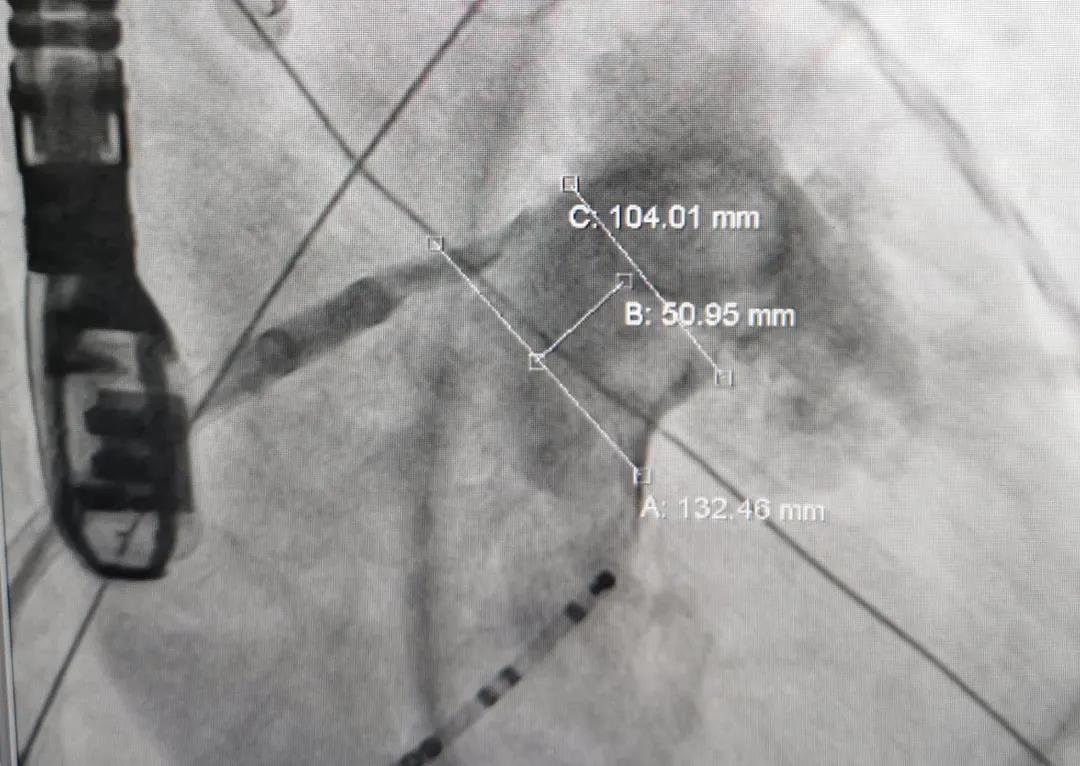 患者为66岁男性,患有持续性房颤、冠状动脉粥样硬化、高脂血症。术前CT三维重建显示左心耳开口为17*27mm,选用LAmbre™2228封堵器进行封堵,多角度造影及TEE显示封堵效果理想,无残余分流。LAmbre™更为纤细的输送鞘可以有效减少医源性损伤的发生,患者术后恢复良好。